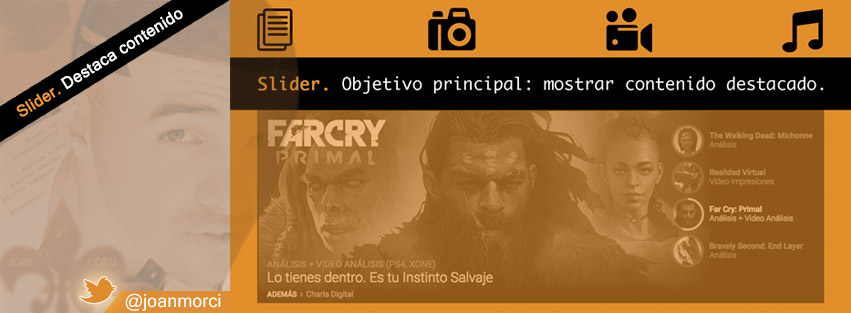 ← Slider: objetivo principal, mostrar contenido destacado